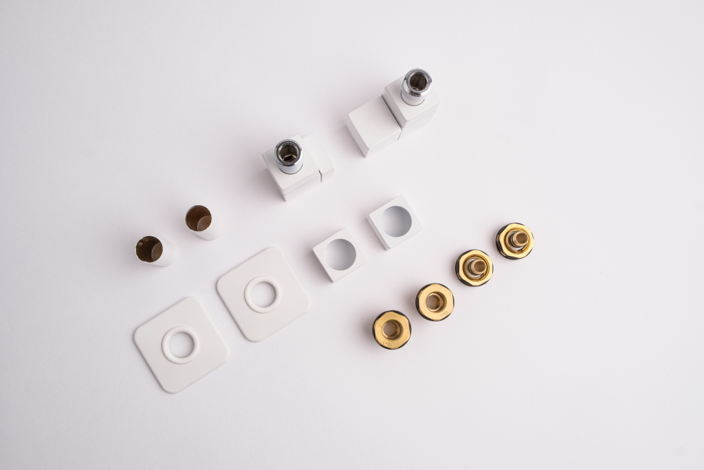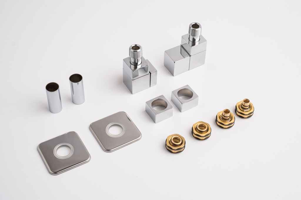 Kompletní sada kromě samotného ventilu obsahuje také krycí rozety a svěrné šroubení pro připojení na měď  15 mm a Alupex 16 mm.