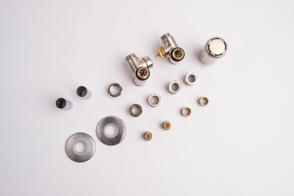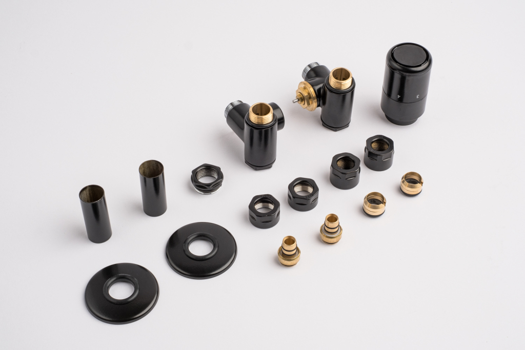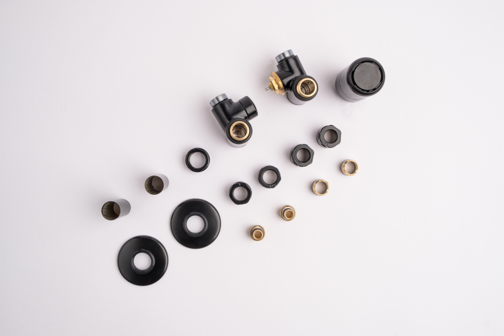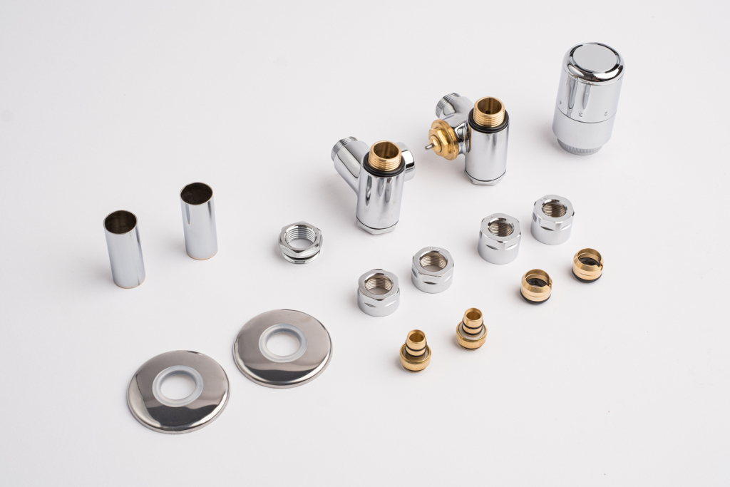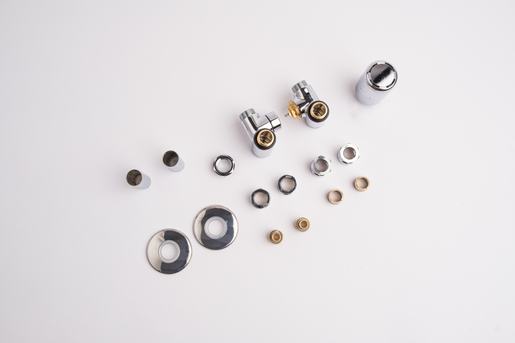 Kompletní sada obsahuje kromě ventilu také krycí rozety a svěrné šroubení pro připojení na měď 15 mm a Alupex 16 mm.