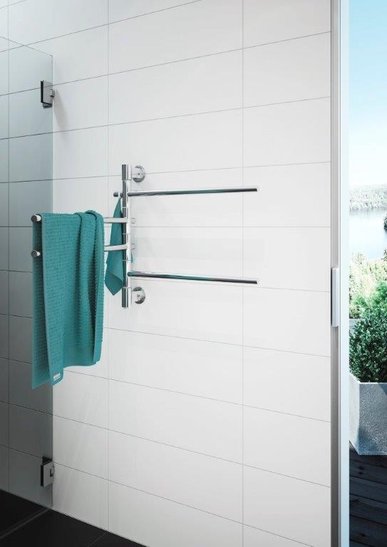 The swiveling arms provide a minimalist appearance. The electric dryer sections can be rotated 180° to allow for easy hanging of towels.