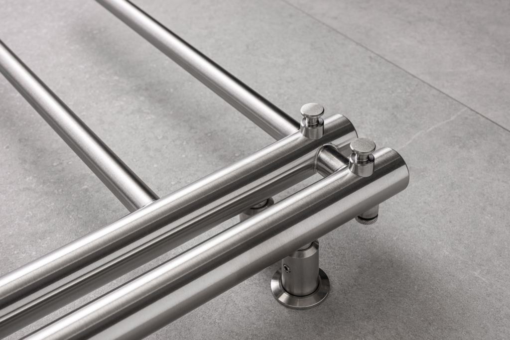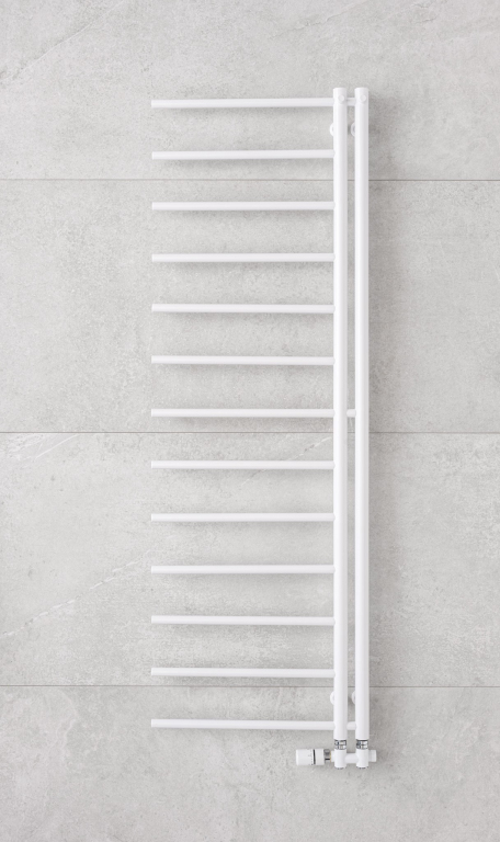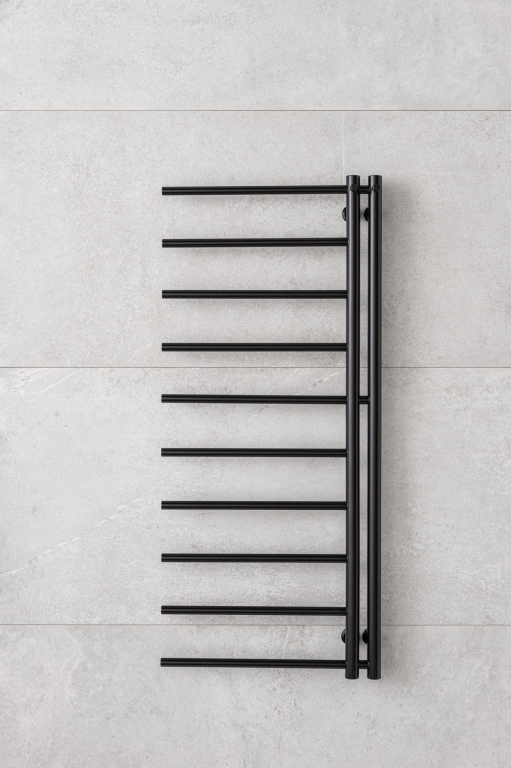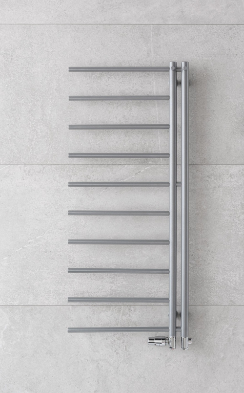 The radiator offers the advantage of simply hanging towels on the side or hooks that are placed on 2 vertical pipes.