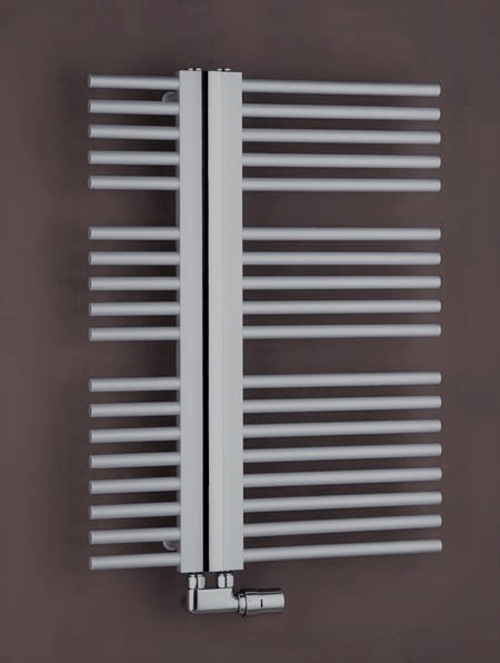 Patentovaný radiátor do kúpeľne je tvorený z hliníkového dvojkomorového profilu s povrchovou úpravou pieskovaný strieborný elox a dizajnovou stredovou lištou v prevedení lesklý chróm alebo nerez efekt.