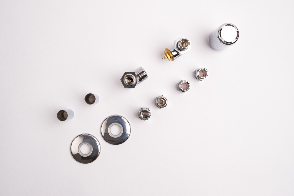 Kompletná sada okrem ventilu obsahuje aj krycie rozety a svorné šróbenie na pripojenie na meď 15 mm a Alupex 16 mm.