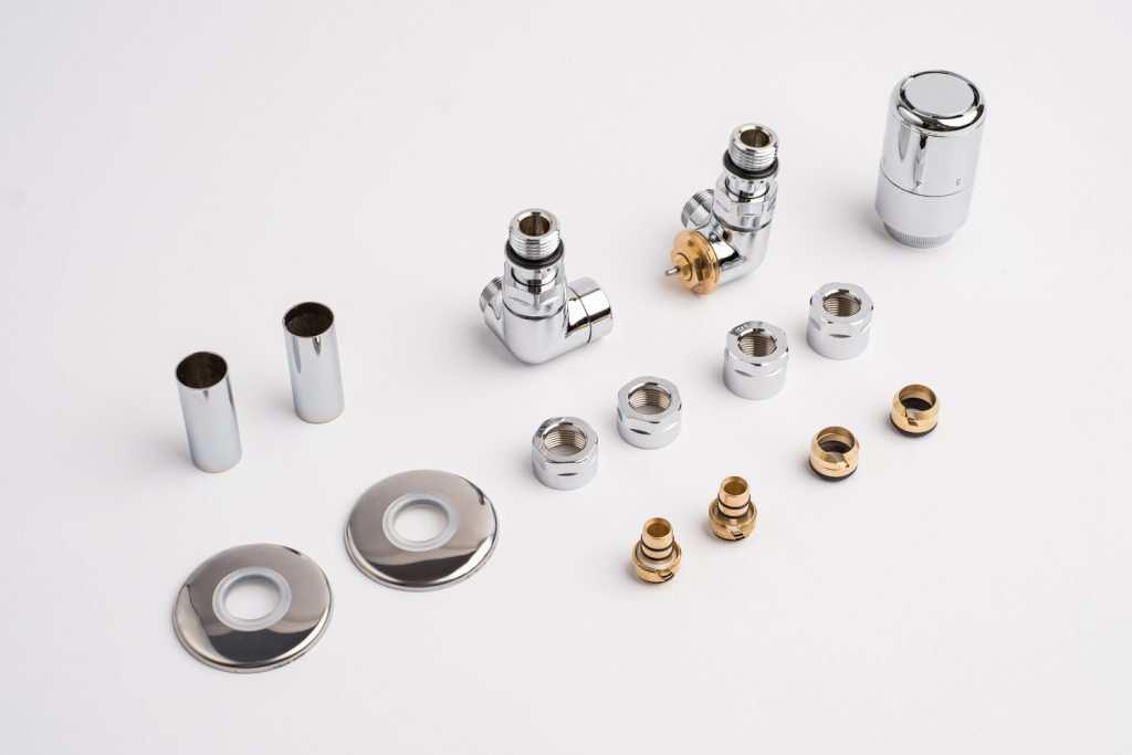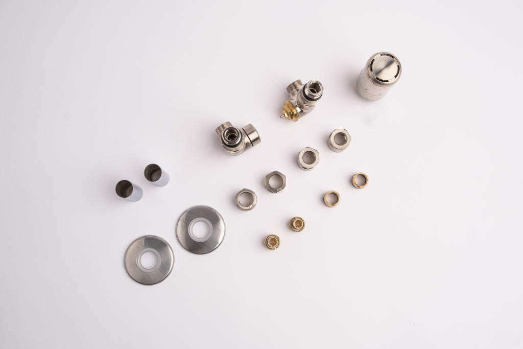 Kompletná sada okrem ventilu obsahuje aj krycie rozety a svorné šróbenie na pripojenie na meď 15 mm a Alupex 16 mm.